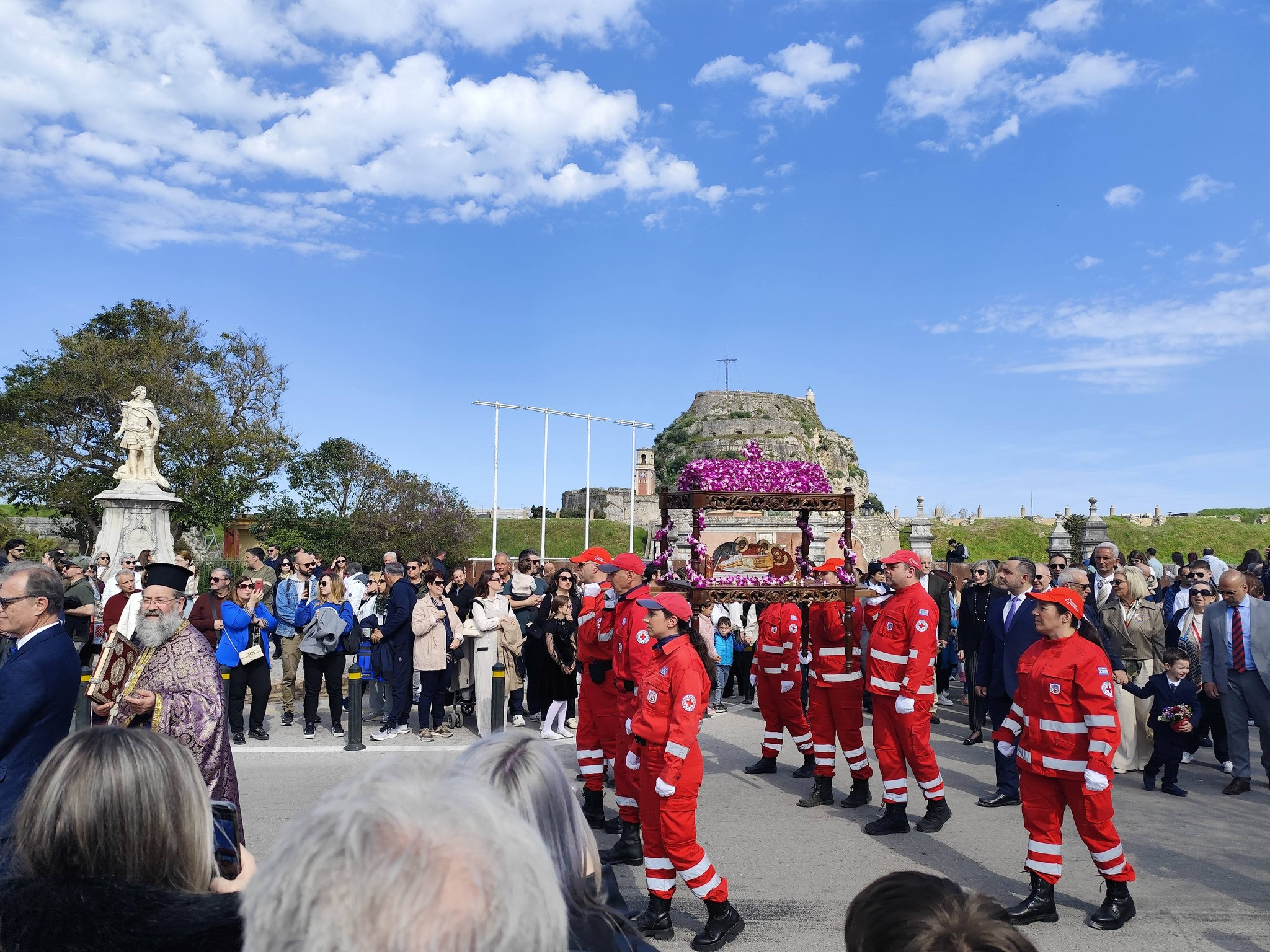 Οι εμβληματικές μπάντες της Κέρκυρας συνοδεύουν τους Επιταφίους με πένθιμα εμβατήρια –όπως το Adagio του Albinoni ή το Amleto– που δονούν την ατμόσφαιρα και προκαλούν δέος.