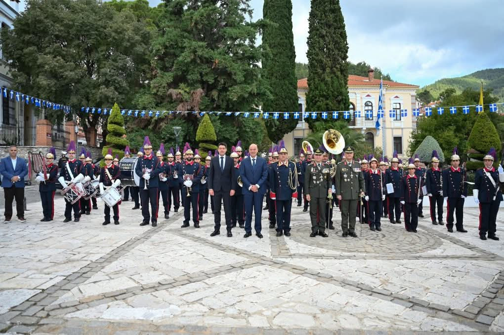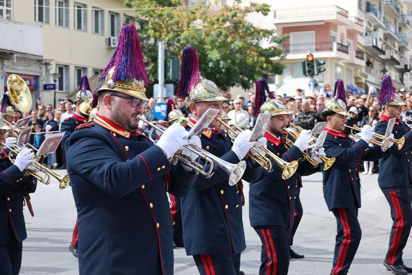 Αμέσως μετά, η μπάντα της ΦΕΑΜ άνοιξε τη μαθητική παρέλαση των Ελευθερίων, αποσπώντας ενθουσιώδες χειροκρότημα από το πλήθος. Τα πατριωτικά εμβατήρια και η άρτια παρουσία των μουσικών ενίσχυσαν το πνεύμα ενότητας και υπερηφάνειας που χαρακτήρισε την ημέρα. Μετά το πέρας της παρέλασης, ο Αρχιμουσικός και τα μέλη δέχθηκαν θερμά συγχαρητήρια από τον Υπουργό, τη στρατιωτική και την αυτοδιοικητική ηγεσία.