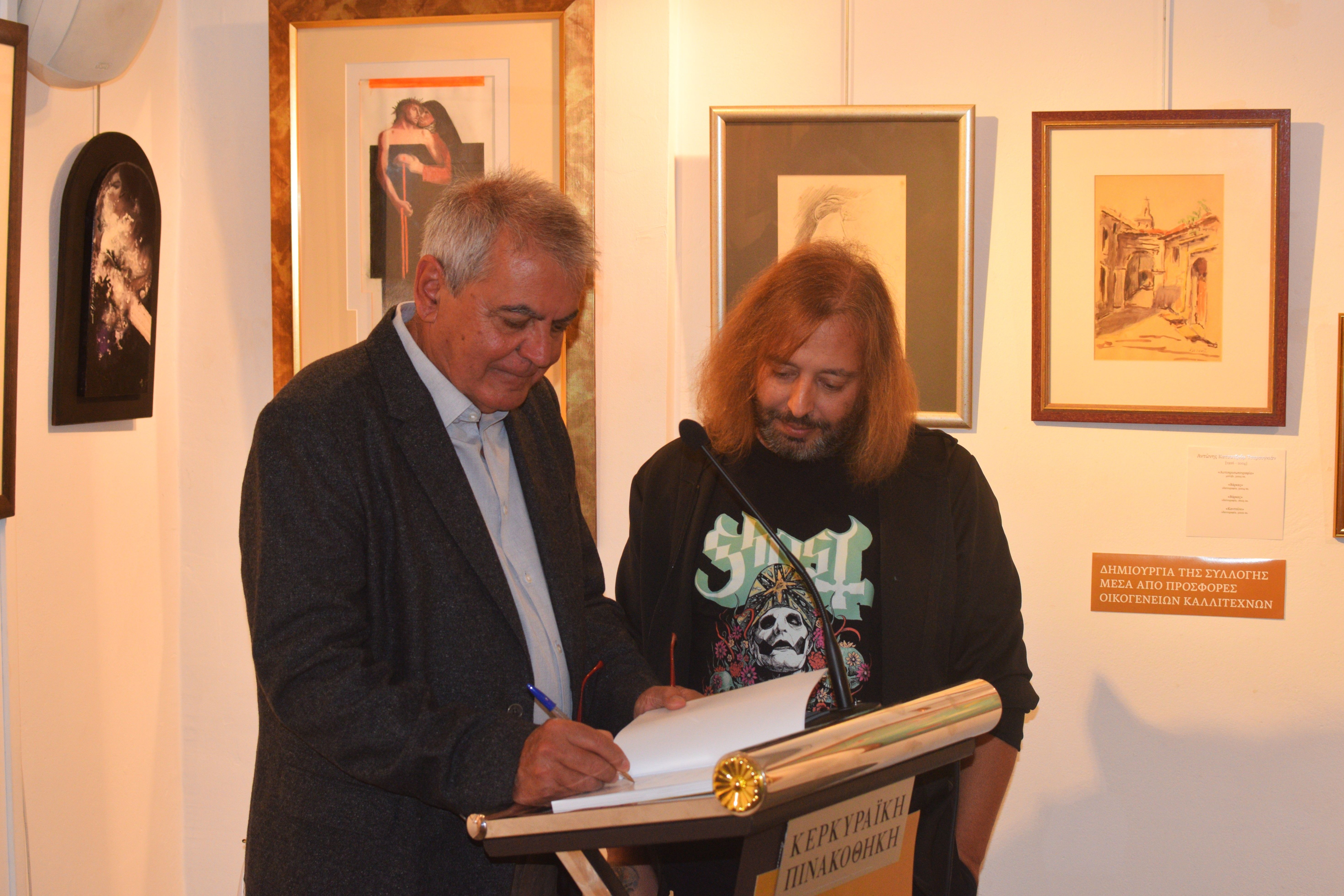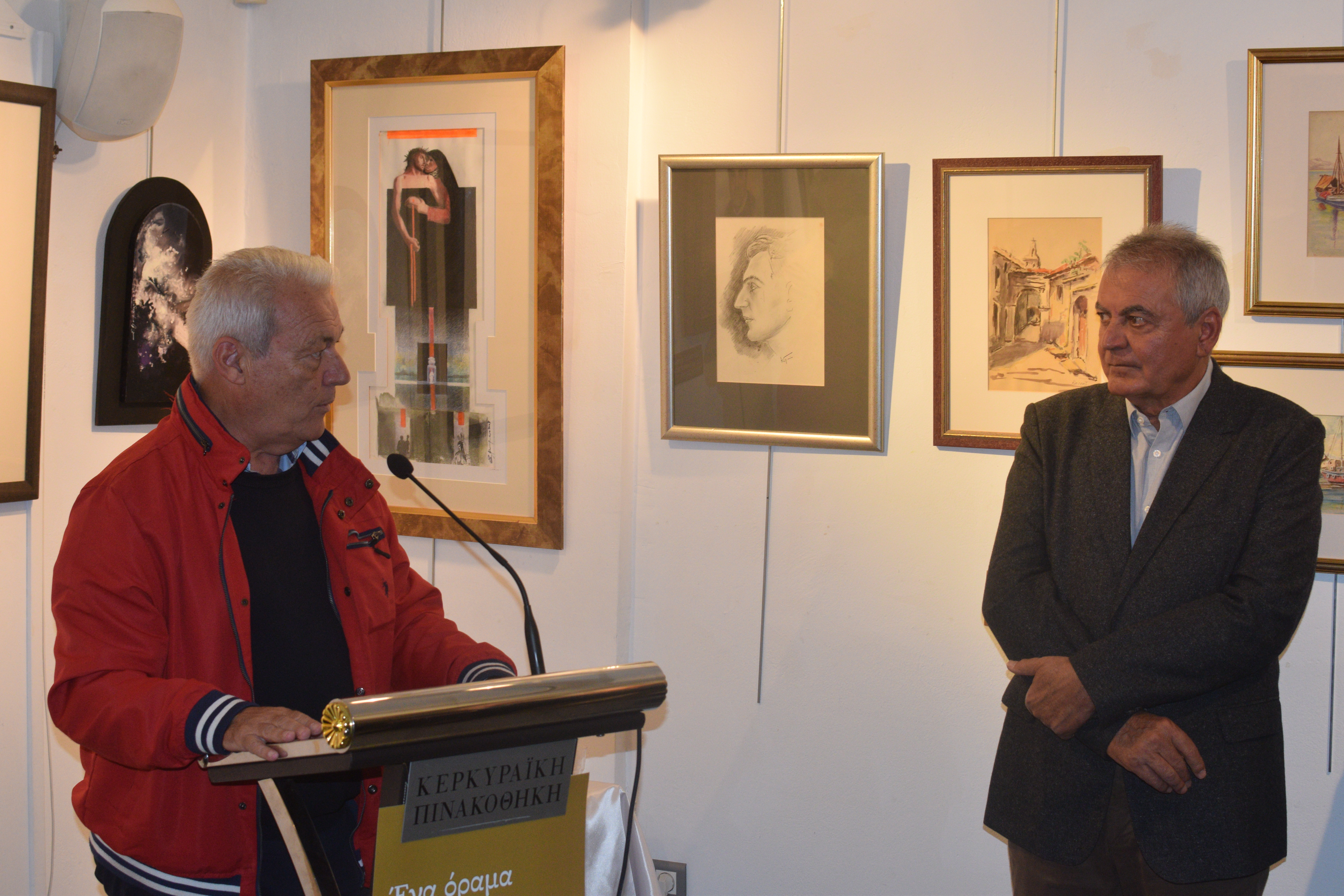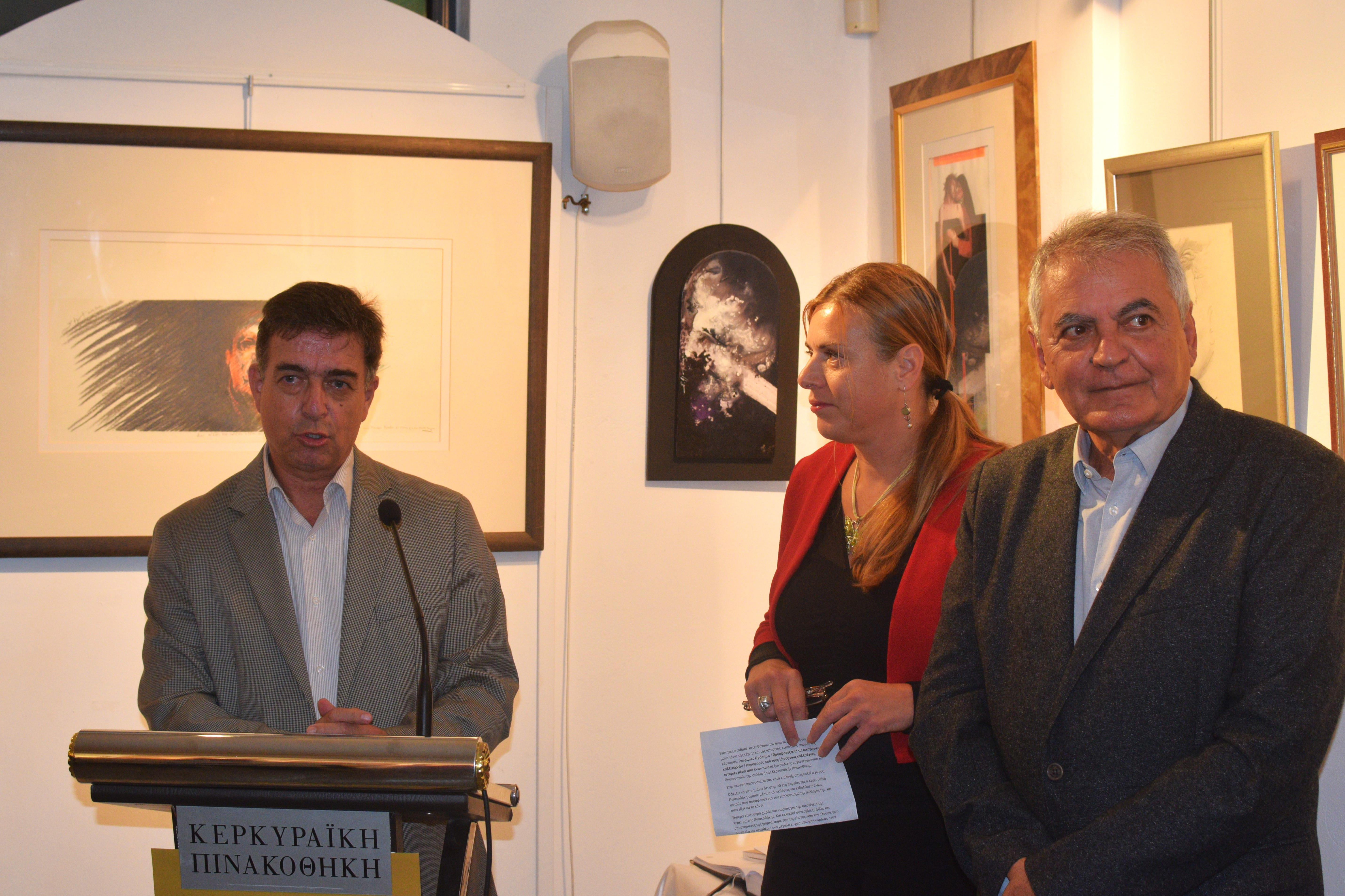 Κατά τη διάρκεια των εγκαινίων μίλησαν, η Ελβίρα Μεταλληνού Γραφίστρια Εκδότρια, ο Κώστας Σουέρεφ Δρ. Ιστορίας και Αρχαιολογίας, η Σοφία Αγαθονικοπούλου - Βραδή, Οικονομολόγος-Μουσειολόγος, ο Παναγιώτης Σαραντίδης Ιστορικός Μουσειολόγος, ο Μιχαήλ Άγγελος Βραδής, ιδρυτής της Κερκυραϊκής Πινακοθήκης, ως εκπρόσωποι της Κερκυραϊκής Πινακοθήκης. Από τους παρόντες προσκεκλημένους που μας τίμησαν με την παρουσία τους, ο Στέφανος Πουλημένος Δήμαρχος Κεντρικής Κέρκυρας, ο Νικόλαος Βραδής, Αντιδήμαρχος Πολιτισμού Κεντρικής Κέρκυρας, ο Ξενοφών Αλαμάνος Πρόεδρος Δημοτικού Συμβουλίου Δήμου Κεντρικής Κέρκυρας, ο Τάκης Μεταλληνός Εικαστικός και Επικεφαλής της Δημοτικής παράταξης "Αλλάζουμε Ρότα" και ο Παναγιώτης Μαυρόπουλος Ζωγράφος.