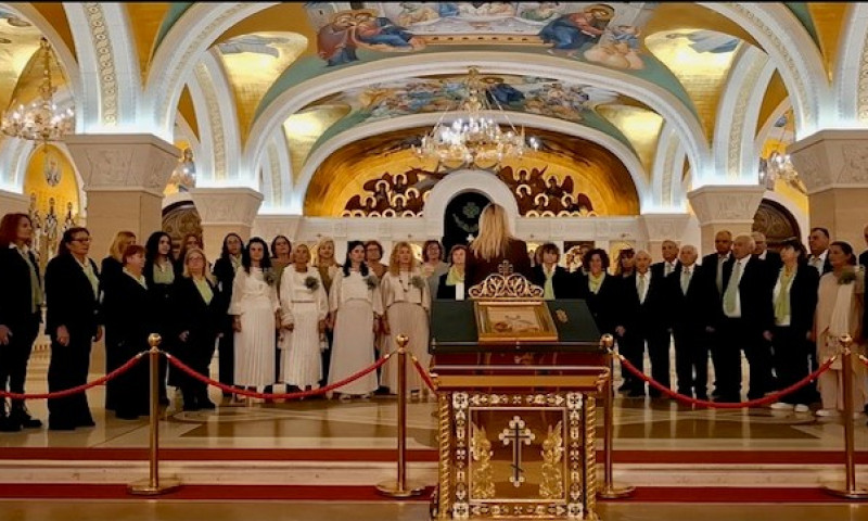 Την επόμενη ημέρα, οι χορωδίες είχαν τη σπάνια τιμή να ψάλλουν μέσα στον Ιερό Ναό του Αγίου Σάββα στο Βελιγράδι, τον μεγαλύτερο ναό των Βαλκανίων και έναν από τους μεγαλύτερους στον κόσμο. Η εξαιρετική ακουστική του ναού και η μεγαλοπρέπεια του εσωτερικού χώρου πρόσφεραν μια εμπειρία ανεπανάληπτη για όλους τους συμμετέχοντες. Μετά το τέλος της απόδοσης, ακολούθησε θερμή υποδοχή και παραδοσιακό κέρασμα.