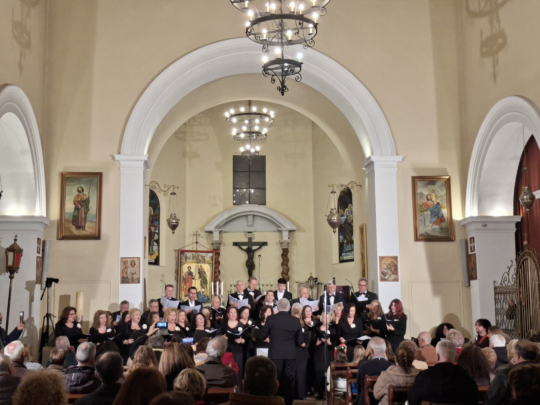 Την αρχή έκανε την Παρασκευή 19 Δεκεμβρίου η Δημοτική Χορωδία "San Giacomo", με τη συναυλία που πραγματοποιήθηκε στον Καθολικό Καθεδρικό Ι.Ν. Αγ. Χριστοφόρου και Ιακώβου (Duomo) υπό την αιγίδα της Καθολικής Αρχιεπισκοπής Κέρκυρας, σε του μαέστρου Antoniy Ivanov και πιανιστική συνοδεία του Παναγιώτη Γαρμπή, ενώ τη φωνητική προετοιμασία επιμελήθηκε η Λία Κολυτά. Πέραν από τα κάλαντα και τους θρησκευτικούς ύμνους, κεντρική θέση στο πρόγραμμα της συναυλίας είχε η Missa Laetitiae (Mass of Joy), ένα σύγχρονο έργο του Σλοβένου συνθέτη Ambrož Čopi για τετράφωνη χορωδία και δύο solo φωνές, με συνοδεία μικρού οργανικού συνόλου. Soloists ήταν οι soprani Δέσποινα Δασκαλιέρου και Μαριέττα Χονδρογιάννη, ενώ συμμετείχαν οι μουσικοί Σμαράγδα Παπατσάκωνα (πιάνο), Γρηγόρης Χρηστίδης Χιουζ (μπάσο) και Πέτρος Λοϊζίδης. Στη συναυλία συμμετείχε ακόμη η Παιδική Χορωδία του Δήμου Κεντρικής Κέρκυρας, υπό τη διεύθυνση της Δώρας Κολίτση.