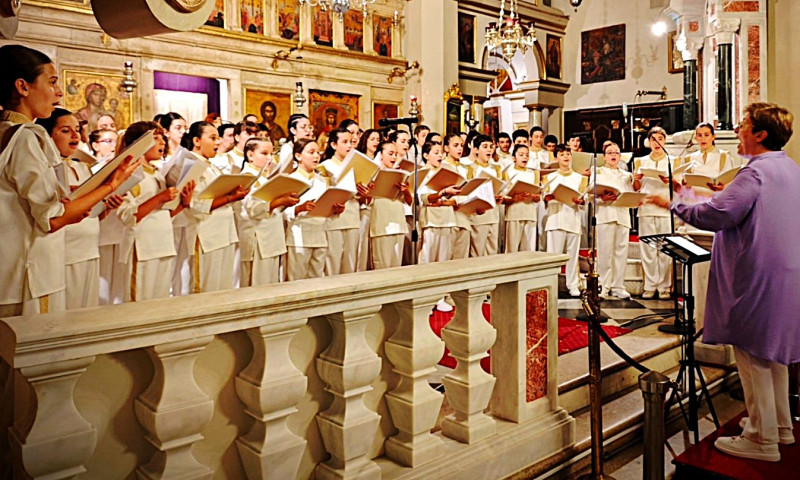 Συμμετείχαν το Σύνολο «Τ’ αργαστήρι», καθώς και τα τμήματα της χορωδίας, παρουσιάζοντας έργα εκκλησιαστικής μουσικής από την τοπική παράδοση έως τη δυτική, μαζί με ύμνους όπως «Αγνή Παρθένε» και «Αι γενεαί πάσαι». Διεύθυνε η Δήμητρα Καλογεροπούλου, στο πιάνο η Μαριλένα Ελούλ, ενώ στο βιολί συμμετείχε ως σολίστ ο Ντάνιελ Λάμτσε.