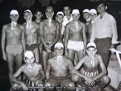 Λεζάντα: Όρθιοι από αριστερά: Δουκάκης, Καραπάνος, Μπούφεσης, Γκρέκας, Καφαράκης, Σπ. Τρούσας (έφορος πόλο ΝΑΟΚ), Τσιμίνος, Κατσούρης Σγουρόπουλος, Άλκης Καρούλης (προπονητής). Καθήμενοι: Λάζαρης, Ζουπάνος και Μίχας.