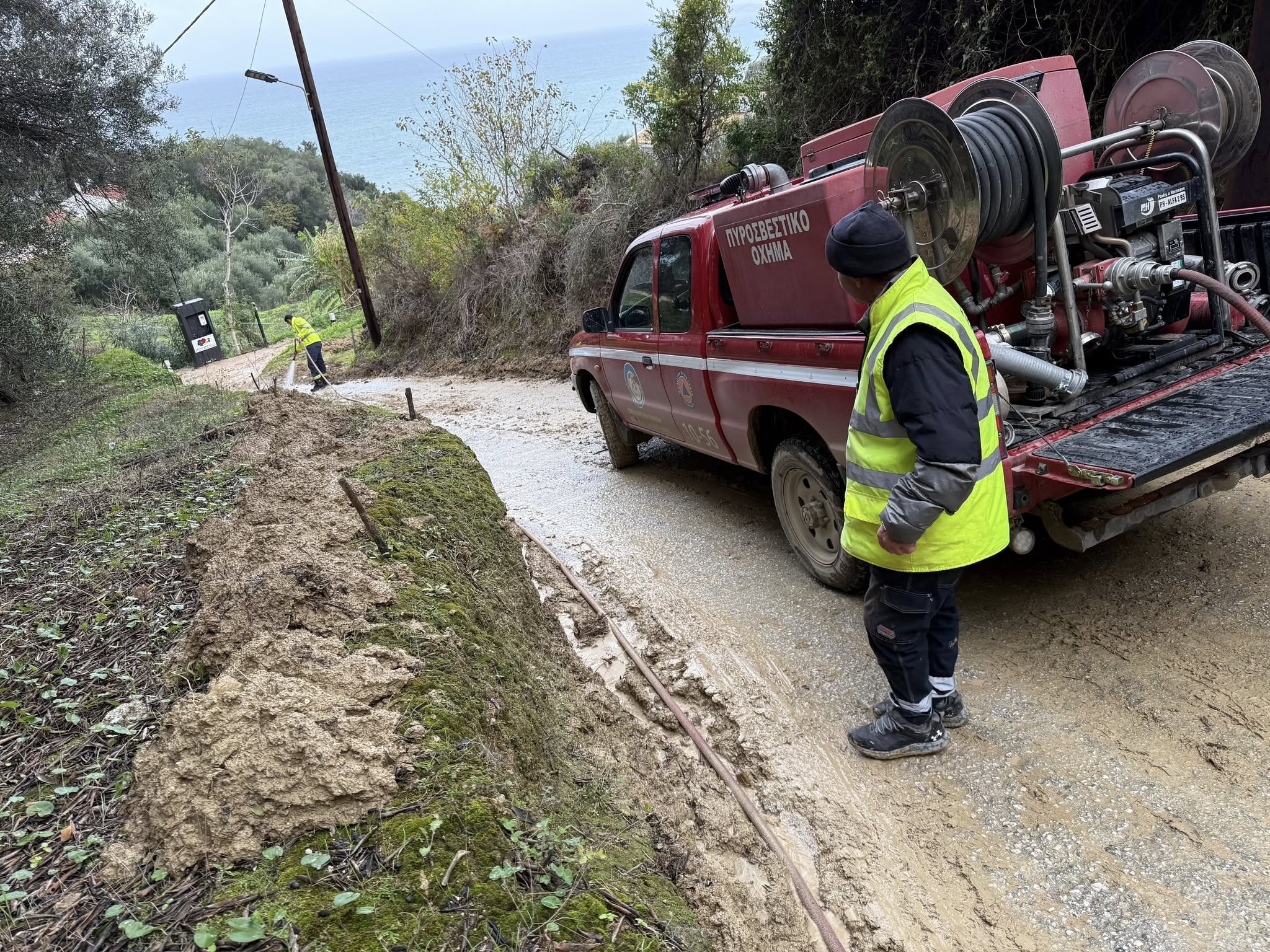 In Avliotes, one of the villages affected by damage and landslides, North Corfu Civil ProtectionService was mobilised on Tuesday morning. People went to the affected areas to assist, coordinated by Vassilis Mouzakitis and staff from “The Smile of the Child” from Chamilí Magouládon, who, using their own equipment, offered FREE assistance to clear houses and roads.