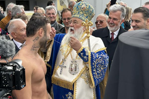 CORFU. The Cross was retrieved by Christos Zouzos, who proudly wished health and smiles to everyone. The Archbishop of Corfu rewarded him with a golden cross.