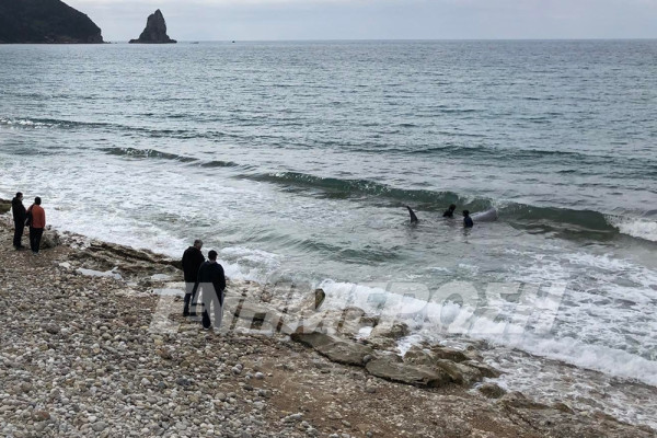 CORFU. Following the tremendous patient efforts of volunteers, the beaked whale that had been washed ashore is back at sea.