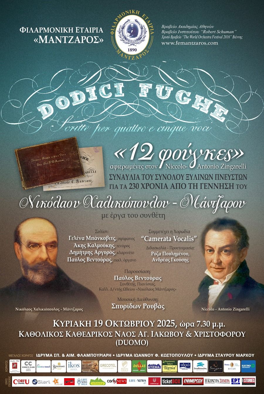 «12 Φούγκες» - Επετειακή συναυλία για τα 230 χρόνια από τη γέννηση του Νικόλαου Χαλικιόπουλου - Μάντζαρου