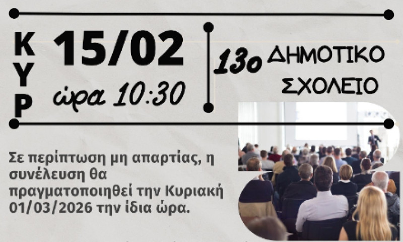 *Σε περίπτωση μη απαρτίας η Συνέλευση θα πραγματοποιηθεί την Κυριακή 01/03/2026 την ίδια ώρα.