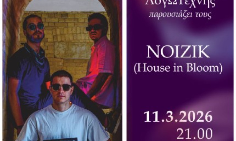 ΚΕΡΚΥΡΑ. Η Λέσχη «ΛογΩΤέχνης» του Τμήματος Τεχνών Ήχου και Εικόνας του Ιονίου Πανεπιστημίου παρουσιάζει τους Noizik σε ένα ξεχωριστό μουσικό αφιέρωμα στη house μουσική με τίτλο «House in Bloom» στις 11.3.2026 στο Πολύτεχνο (21:00).