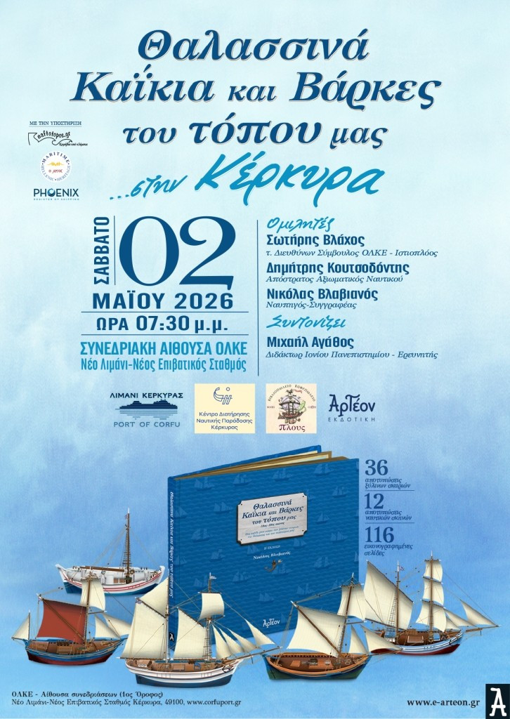 ΚΕΡΚΥΡΑ. Η πλούσια παράδοση των ελληνικών ξύλινων σκαριών και η τέχνη της παραδοσιακής ναυπηγικής ζωντανεύουν στην Κέρκυρα, σε μια εκδήλωση με βαθύ πολιτισμικό αποτύπωμα. Το Σάββατο 2 Μαΐου, στις 19:30, η συνεδριακή αίθουσα του ΟΛΚΕ Α.Ε. θα φιλοξενήσει την παρουσίαση του βιβλίου του Νικόλαου Βλαβιανού, με τίτλο «Θαλασσινά καΐκια και βάρκες του τόπου μας».