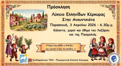 Αίθουσα Τελετών Ιονίου Ακαδημίας «Γεώργιος Γραμματικάκης» την Παρασκευή 3 Απριλίου 2026, 19.30.