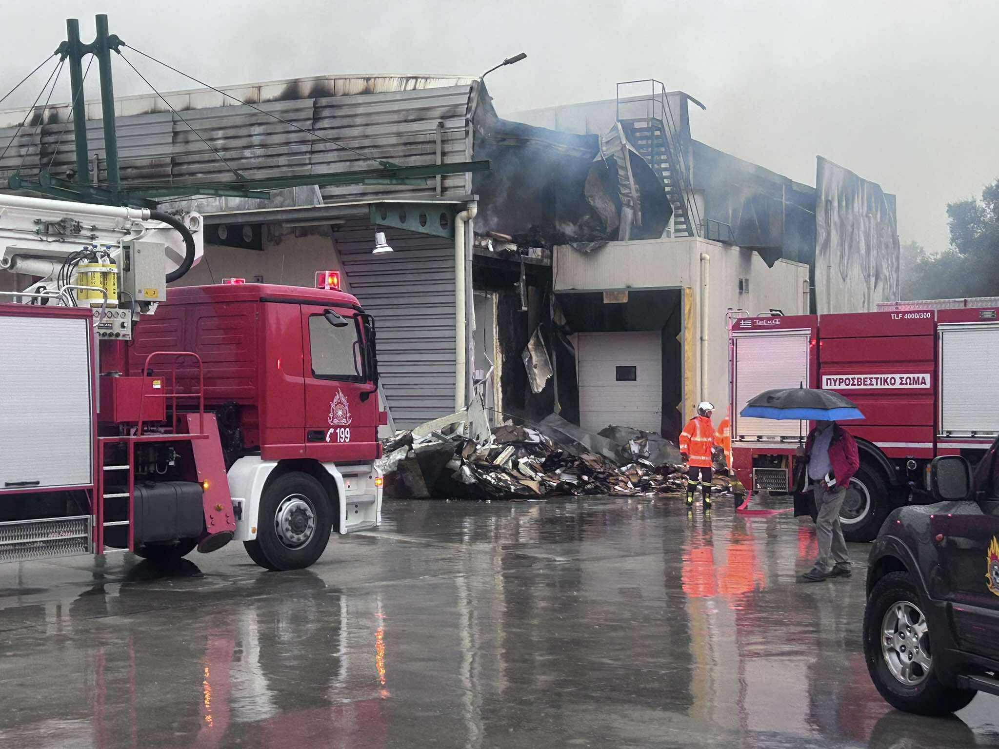 In the morning, Fire Department crews were working to contain the thick smoke, while the entire operation took place under continuous rainfall.