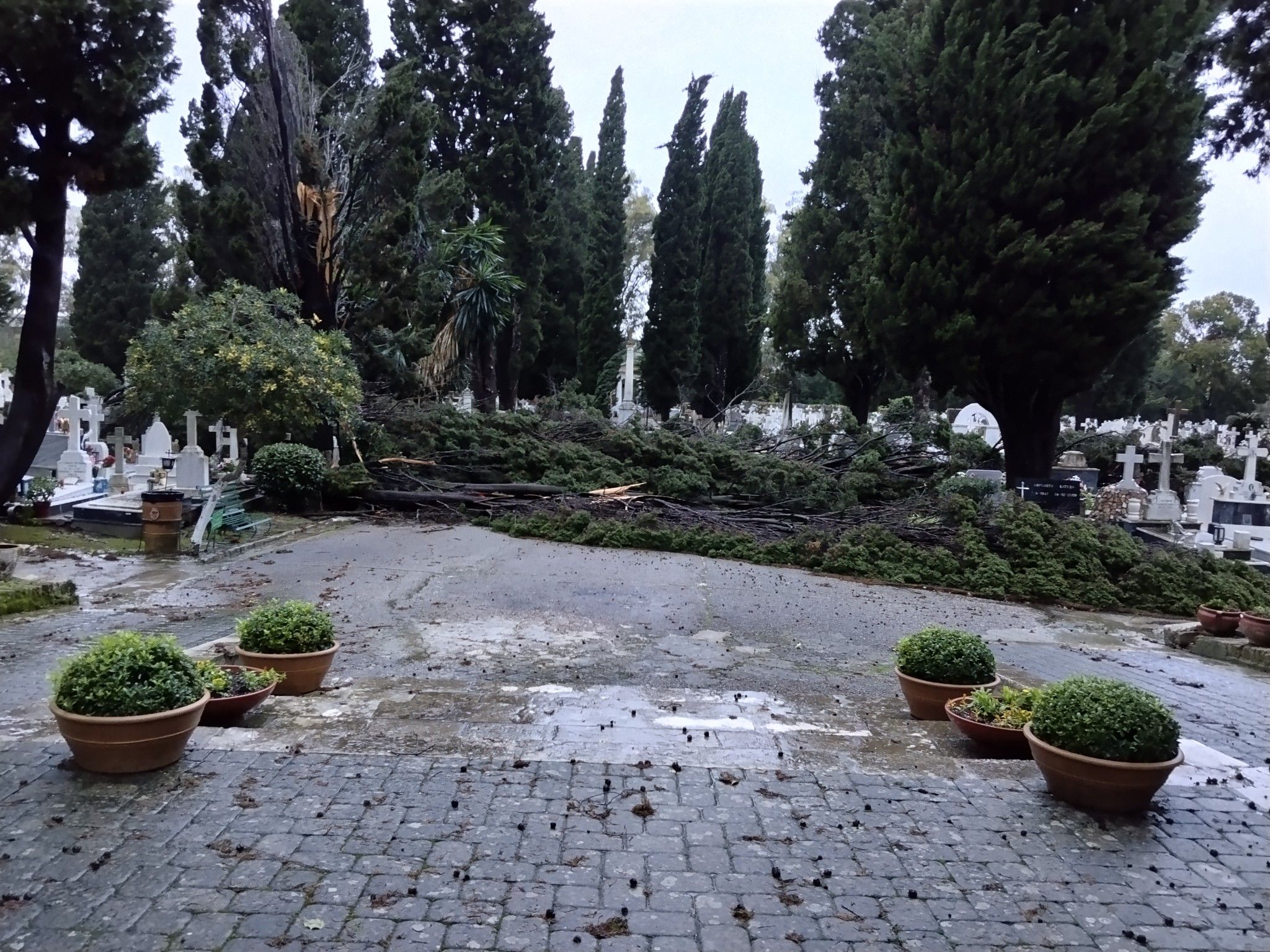 Μία από τις μεγαλύτερες ζημιές, εντοπίζεται στο Α' Νεκροταφείο της πόλης. Οι ισχυρές βροχές έχουν προκαλέσει μεγάλη καταστροφή, ιδίως μπροστά από την πύλη της εκκλησίας και πιο κάτω στα σκαλιά. Πολλά σημεία έχουν υποστεί ζημιές, με αποτέλεσμα να έχουν σπάσει πολλοί τάφοι, δημιουργώντας μια εικόνα καταστροφής.