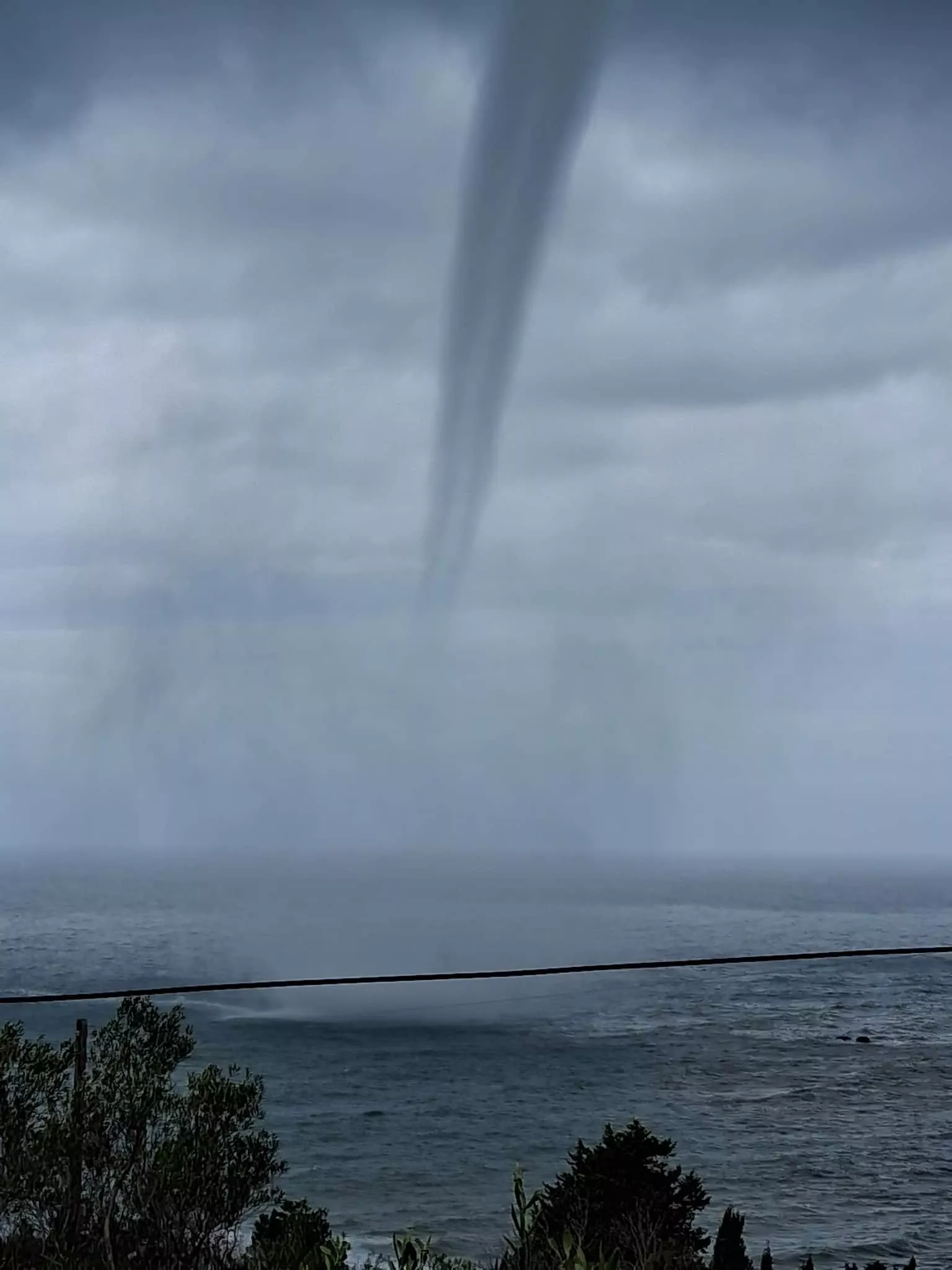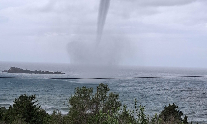Το θέαμα ήταν μοναδικό: οι τεράστιες υδάτινες δίνες "χορεύαν" πάνω από τη θάλασσα, δημιουργώντας εικόνες ομορφιάς αλλά και έντονης ανησυχίας, δεδομένου του άσχημου καιρού με βροχές που επικρατεί στην περιοχή.