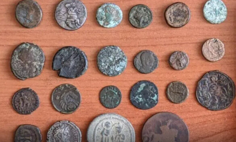 According to the competent Ephorate of Antiquities, the coins date from the 4th century BC to the 17th century AD, fall under archaeological protection laws, and are considered to be of significant historical value.