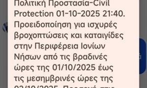 Παρακαλούνται οι πολίτες να είναι ιδιαίτερα προσεκτικοί, μεριμνώντας για τη λήψη μέτρων αυτοπροστασίας από κινδύνους που προέρχονται από την εκδήλωση των έντονων καιρικών φαινομένων.