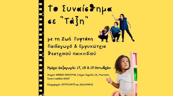 Παρασκευή 17, Σάββατο 18 και Κυριακή 19 Οκτώβρη - Διάρκεια 18:00-21:00 (και σε συνεννόηση με τους συμμετέχοντες) - Στον χώρο του Αφενός Κινούμαι Σπ. Περούλη16, Μαντούκι. Δίνεται βεβαίωση παρακολούθησης
