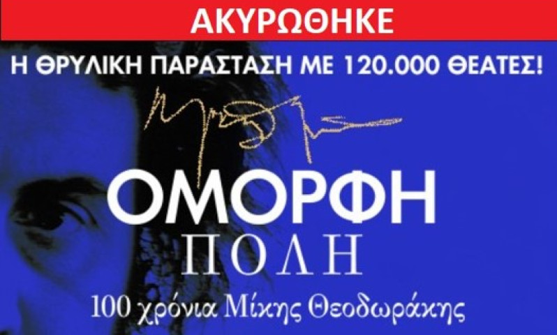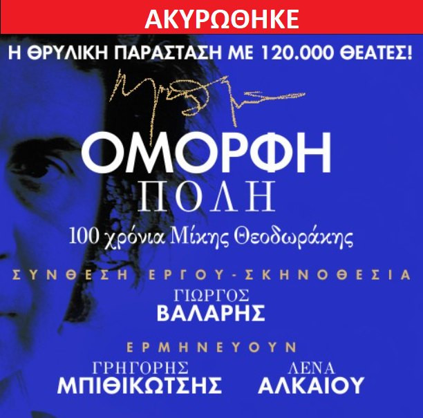 Ακυρώνεται η παραστάση “Όμορφη Πόλη – 100 χρόνια Μίκης Θεοδωράκης”