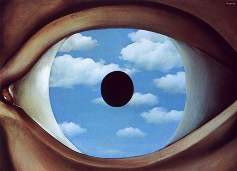 René Magritte, «Le Faux Miroir» (1928). Το μάτι γίνεται ουρανός, σύμβολο του νου που αρχίζει να βλέπει πέρα από το προφανές. Η εφηβεία, όπως και το βλέμμα αυτό, δεν καθρεφτίζει απλώς τον κόσμο• τον ξαναφτιάχνει μέσα από τη δική της φαντασία.