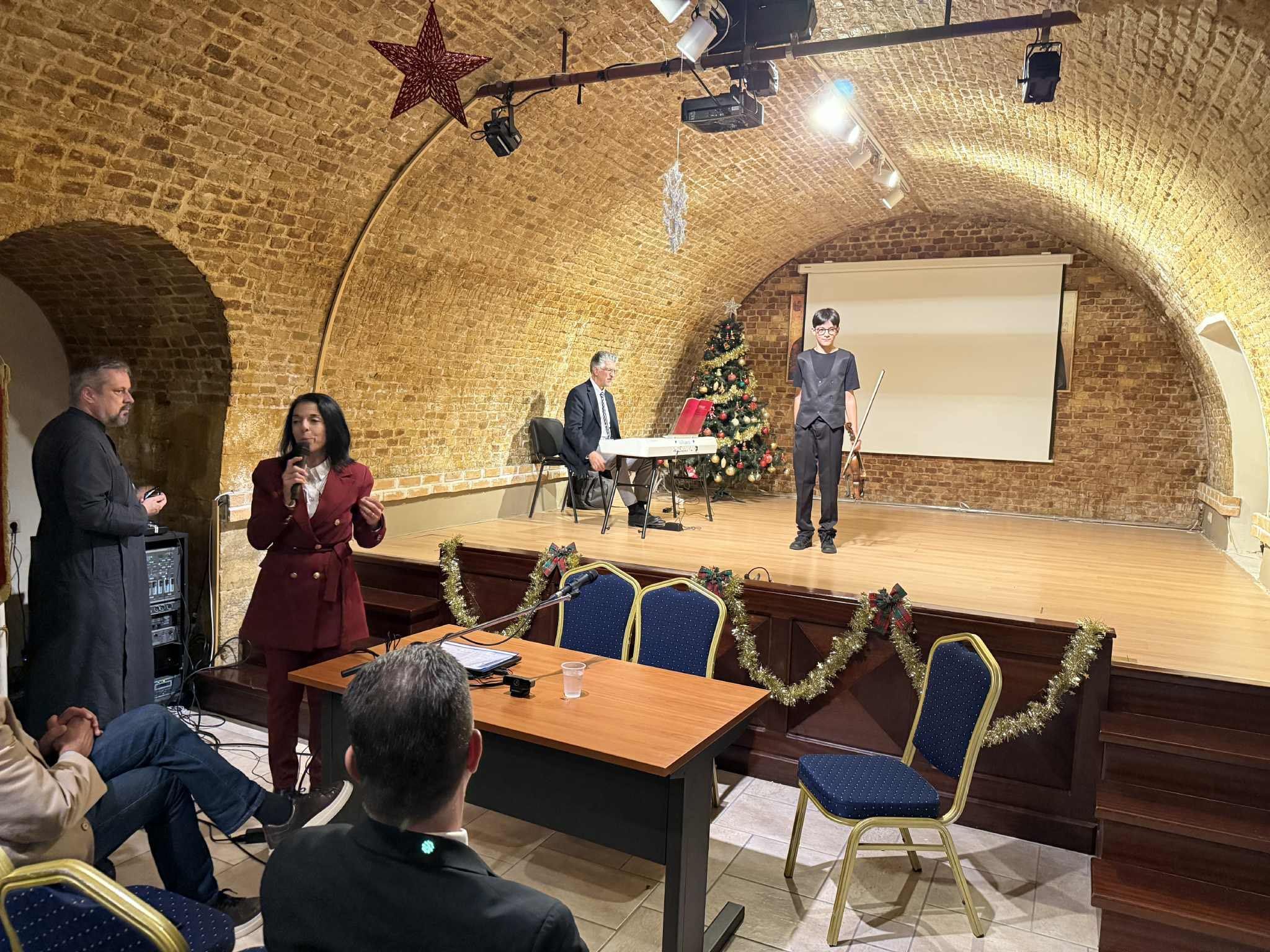 Η έκπληξη ήταν στο τέλος των εισηγήσεων με την παρουσία του μαθητή του Γυμνασίου Αγρού Αλέξανδρου Μάριου Αρμένη ως σολίστα στο βιολί, ο οποίος απέδωσε το «φθινόπωρο» από τις «4 Εποχές» του Βιβάλντι, σε συνοδεία πιάνου από το διακεκριμένο πιανίστα κ. Χρόνη Μπάνο.