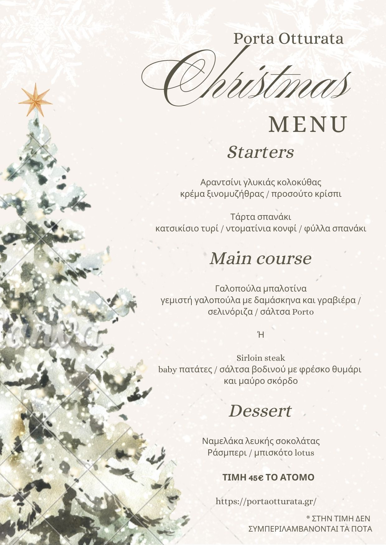 Χριστούγεννα & Πρωτοχρονιά: Για τις πιο λαμπρές ημέρες του χρόνου, ετοιμάσαμε για εσάς κάτι ξεχωριστό! Εορταστικά Set Menus για την Παραμονή των Χριστουγέννων και την Παραμονή της Πρωτοχρονιάς. Δύο μοναδικές γαστρονομικές διαδρομές, ειδικά σχεδιασμένες για να υποδεχτούμε το 2026 με την πολυτέλεια και τη γεύση που του αξίζει.