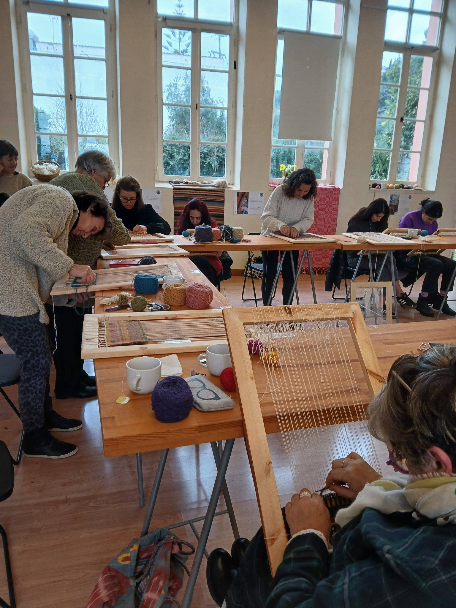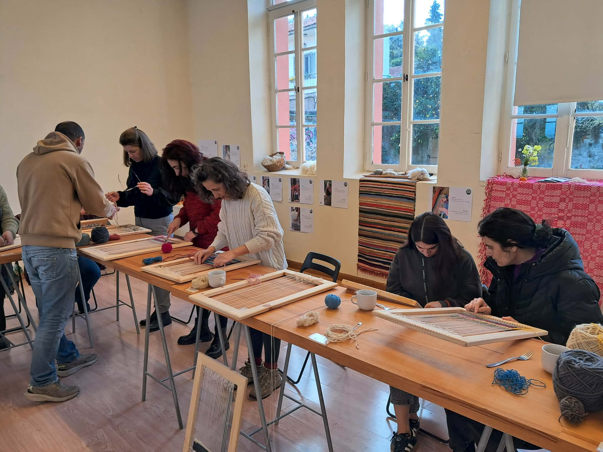 1.Εκμάθηση Τεχνικών: Οι συμμετέχουσες εργάστηκαν σε ατομικά τελάρα, όπου ήρθαν σε επαφή με τις βασικές τεχνικές ύφανσης.