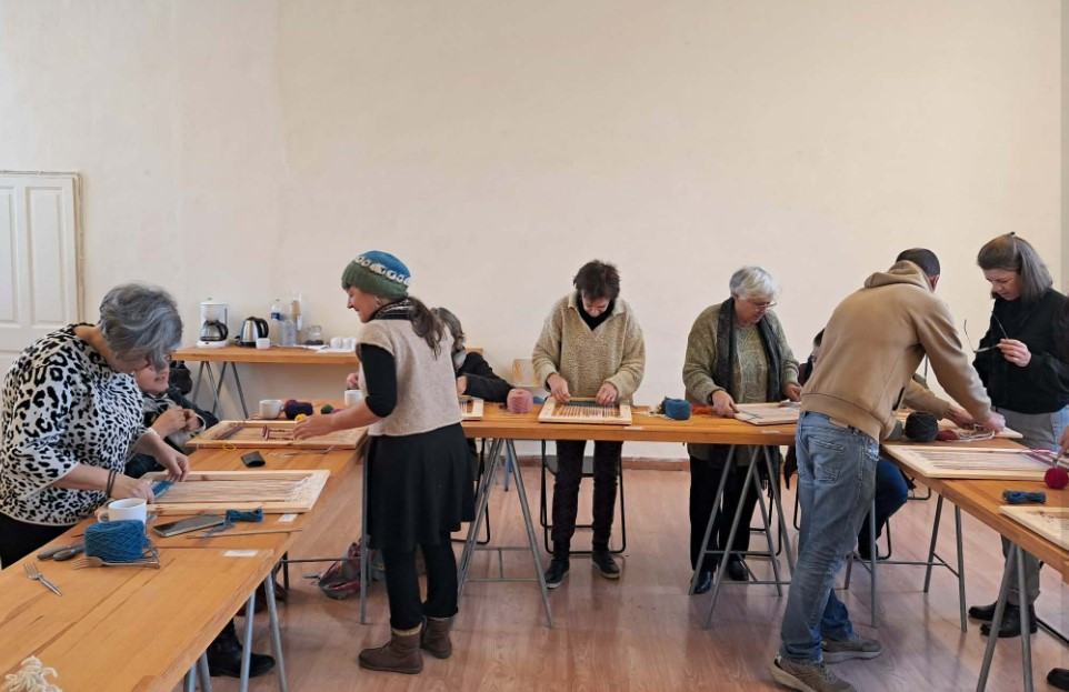 3.Ολοκλήρωση Έργων: Τη δεύτερη ημέρα της πρακτικής, οι συμμετέχουσες εμβάθυναν στις τεχνικές τους, ολοκληρώνοντας τα υφαντά τους και αποσπώντας τα από τα τελάρα.