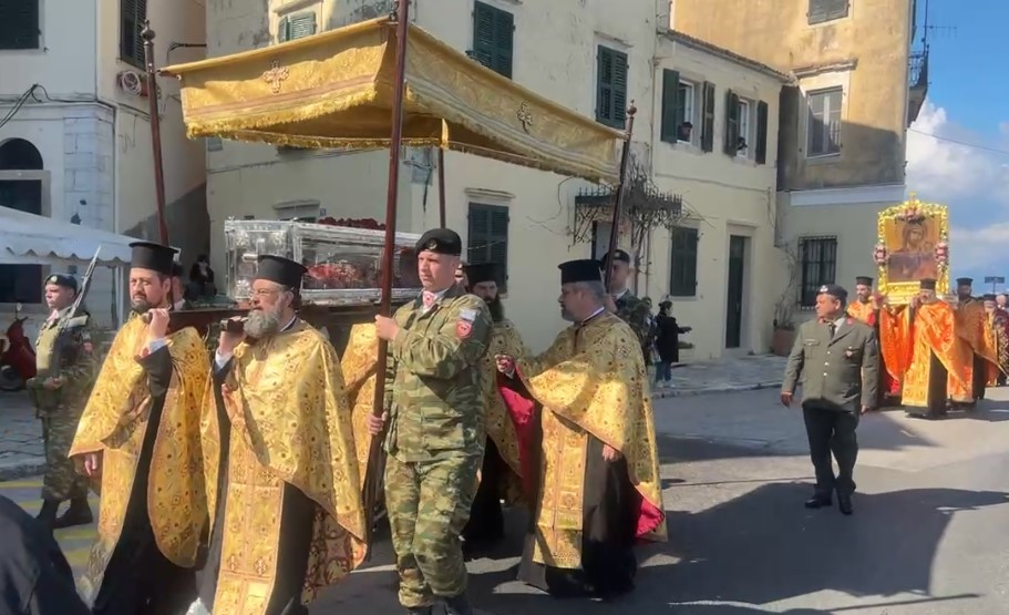 ΚΕΡΚΥΡΑ. Με κάθε μεγαλοπρέπεια και με σύμμαχο τον καλό καιρό ολοκληρώθηκε η λιτάνευση του ιερού σκηνώματος της Αγίας Θεοδώρας της Αυγούστης στην Κέρκυρα, την Κυριακή της Ορθοδοξίας, 1η Μαρτίου 2026.