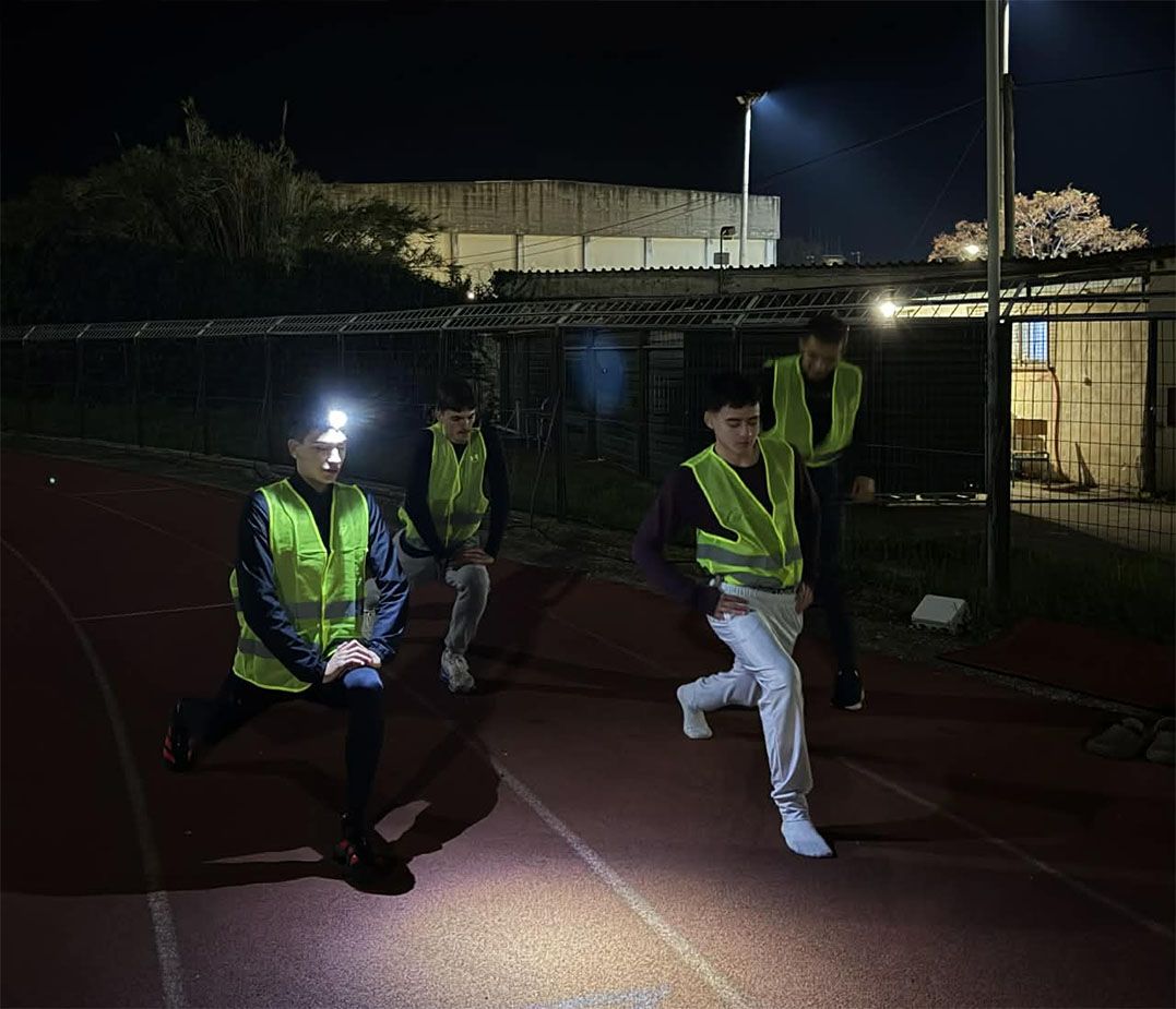 Προπόνηση στο σκοτάδι του ΕΑΚΚ με φακούς και φωσφορούχα γιλέκα