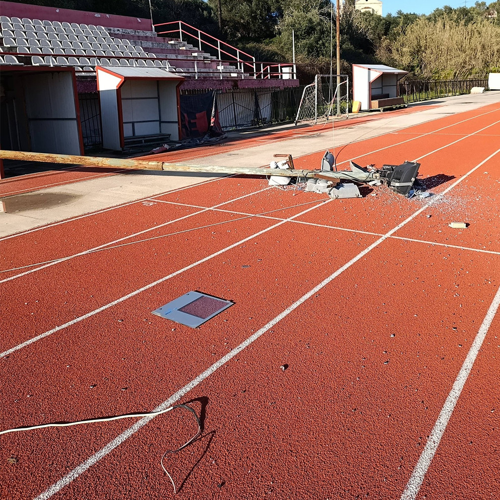 Έπεσε μια κολώνα φωτισμού στο γήπεδο της Λευκίμμης