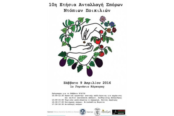 ΚΕΡΚΥΡΑ. Το Σάββατο 9 Απριλίου 2016 θα πραγματοποιηθεί η 10η ετήσια ανταλλαγή σπόρων ντόπιων ποικιλιών στο 1ο Γυμνάσιο Κέρκυρας.