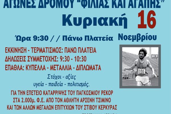Οι αγώνες δρόμου «Φιλίας και Αγάπης» την Κυριακή 16/11