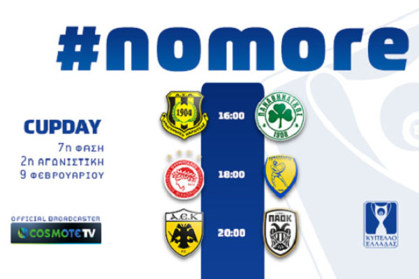 ΑΘΗΝΑ. Με κεντρικό σύνθημα #NoMore, η Ελληνική Ποδοσφαιρική Ομοσπονδία και οι ομάδες που συμμετέχουν στην προημιτελική φάση του Κυπέλλου Ελλάδας έστειλαν σαφές μήνυμα κατά της βίας.