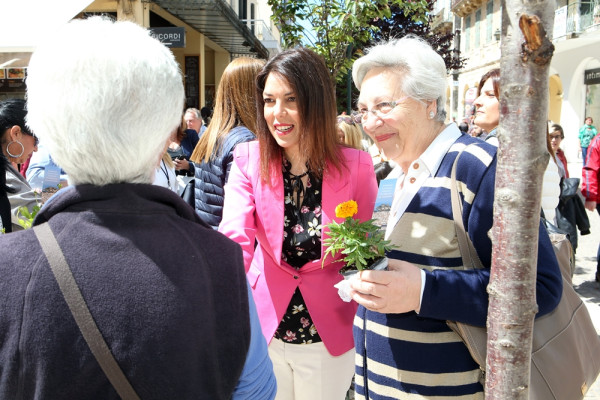 Η υποψήφια δήμαρχος Μερόπη Υδραίου μοίρασε λουλούδια