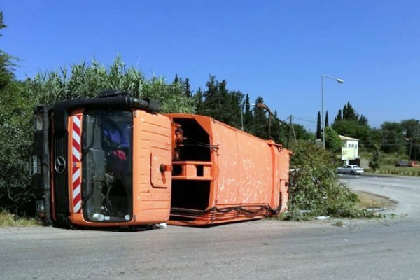 Ανετράπη απορριμματοφόρο στον Πέλεκα