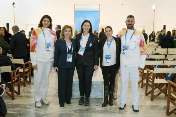Στην εκδήλωση αφής της ολυμπιακής φλόγας μαζί με άλλους ολυμπιονίκες.