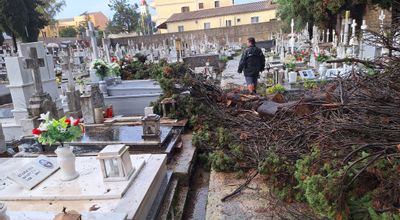 Δυστυχώς, τα δέντρα έπεσαν πάνω σε αρκετούς τάφους, προκαλώντας υλικές ζημιές σε μνημεία και σταυρούς.
