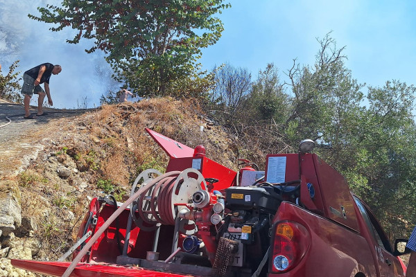 Επίγειες και εναέριες δυνάμεις της Πυροσβεστικής με την βοήθεια των κατοίκων κατάφεραν σύντομα να ελέγξουν την φωτιά.