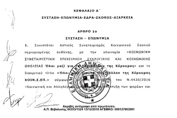 ΚΕΡΚΥΡΑ. Το καταστατικό της Κοινωνικής Συνεταιριστικής Επιχείρησης (ΚΟΙΝ.ΣΕ.Π.) που έχει στόχο να ενσωματώσει και να διαχειριστεί με αποτελεσματικότητα