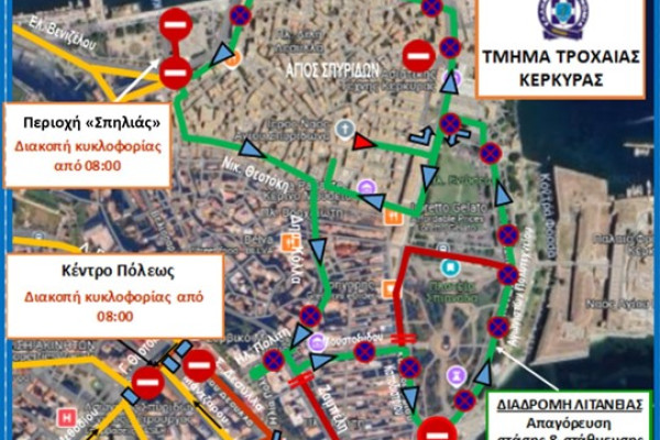 Κέρκυρα: Κυκλοφοριακές ρυθμίσεις για τη Λιτανεία της Κυριακής των Βαΐων (5 Απριλίου 2026)