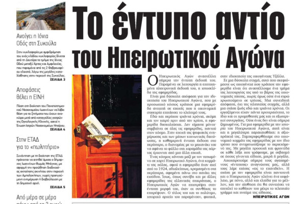 Η αναστολή της έκδοσης μιας ιστορικής περιφερειακής εφημερίδας, όπως είναι ο Ηπειρωτικός Αγώνας, εκτός από το ενδιαφέρον που προκαλεί για τους φίλους μας και τους συνεργάτες του φύλλου, γεννά και θυμό.