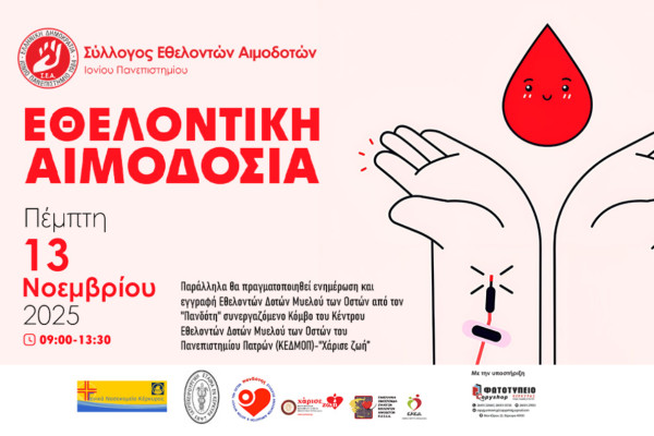 Ιόνιο Πανεπιστήμιο: Αιμοδοσία και Εγγραφή Δοτών Μυελού των Οστών