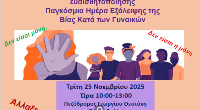 Την Τρίτη 25 Νοεμβρίου 2025 κατά τις ώρες 10:00-13:00 στον Πεζόδρομο Γεωργίου Θεοτόκη (Πόρτα Ρεάλε).