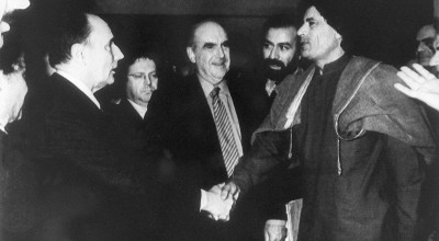Η ανεκδοτολογική αφήγηση αυτήκοου Παλαιστίνου διπλωμάτη θέλει να αποκρίνεται ο Καντάφι σε αίτημα του Μιτεράν λέγοντας, «ό, τι πει ο πρόεδρος», δείχνοντας τον Ανδρέα Παπανδρέου! «Από την Κρήτη του Παπανδρέου στην Κύπρο του Μητσοτάκη: η μεταμόρφωση της μεσογειακής διπλωματίας της Ελλάδας».