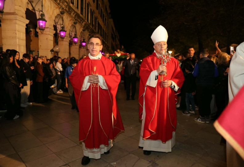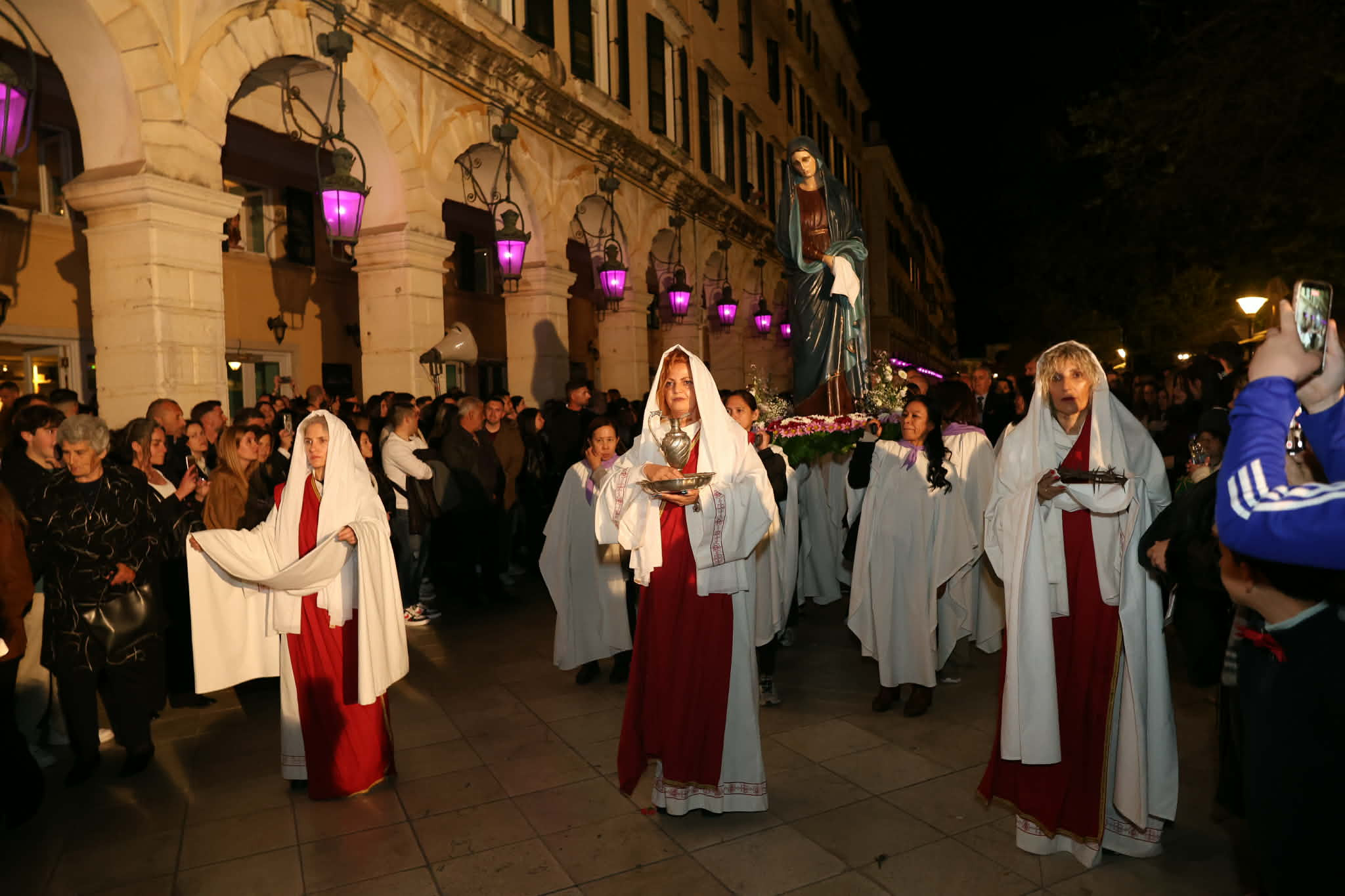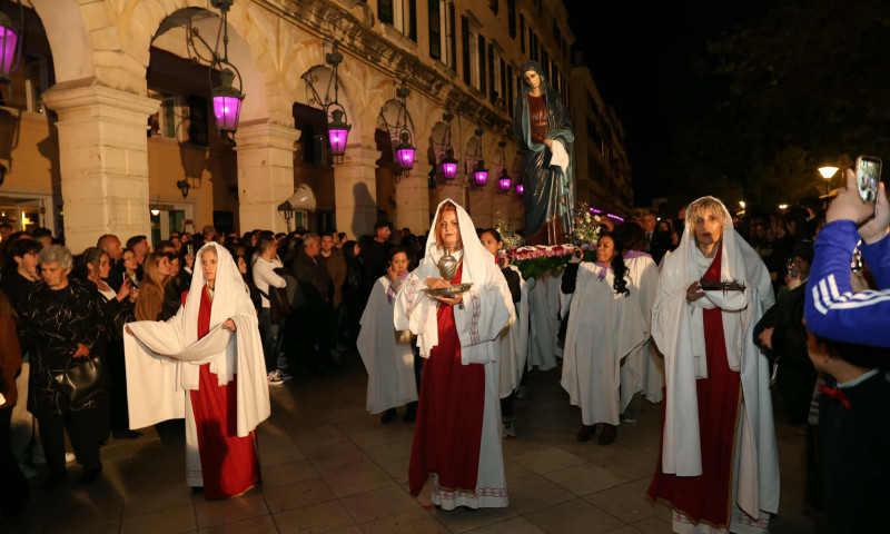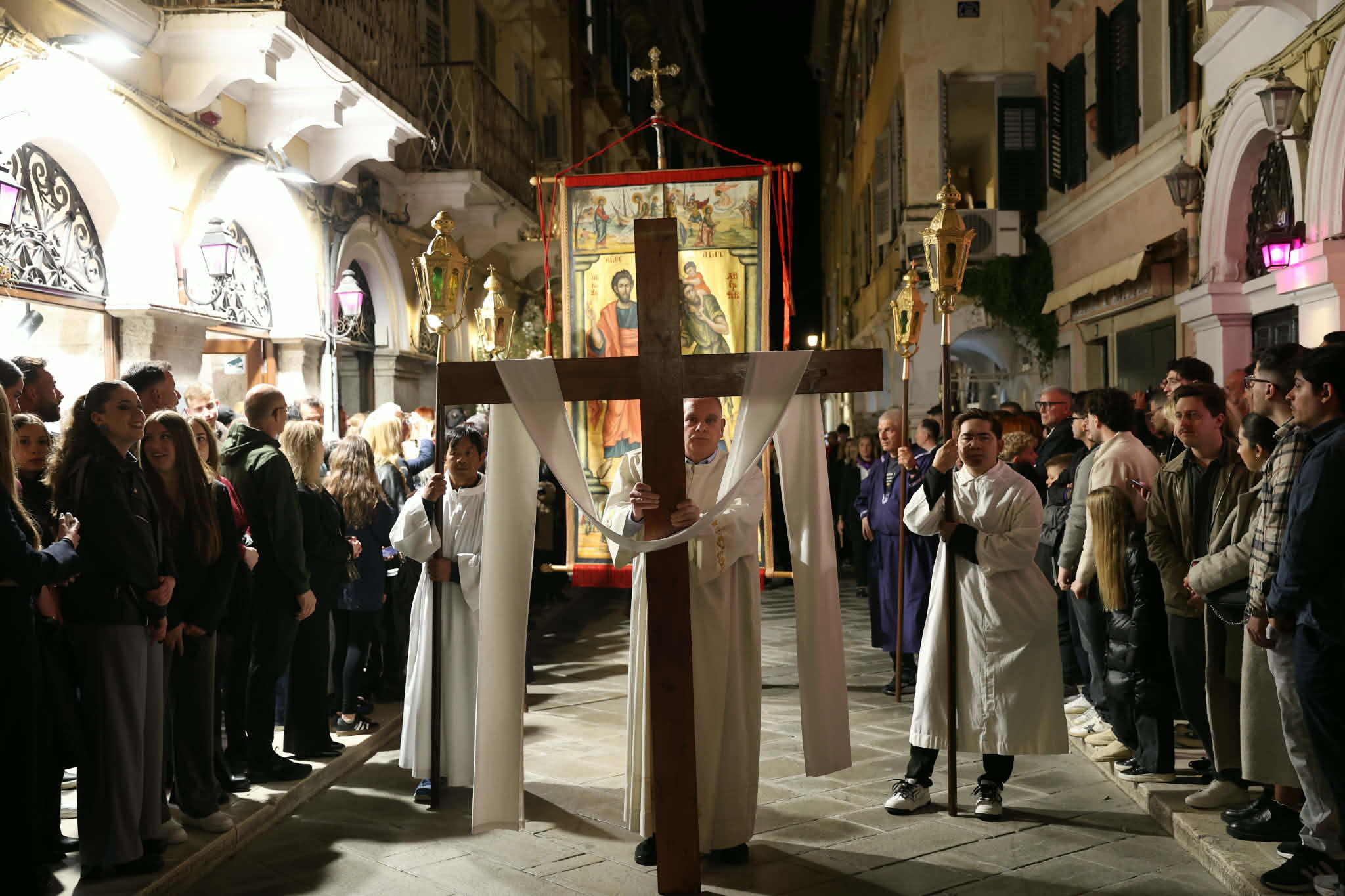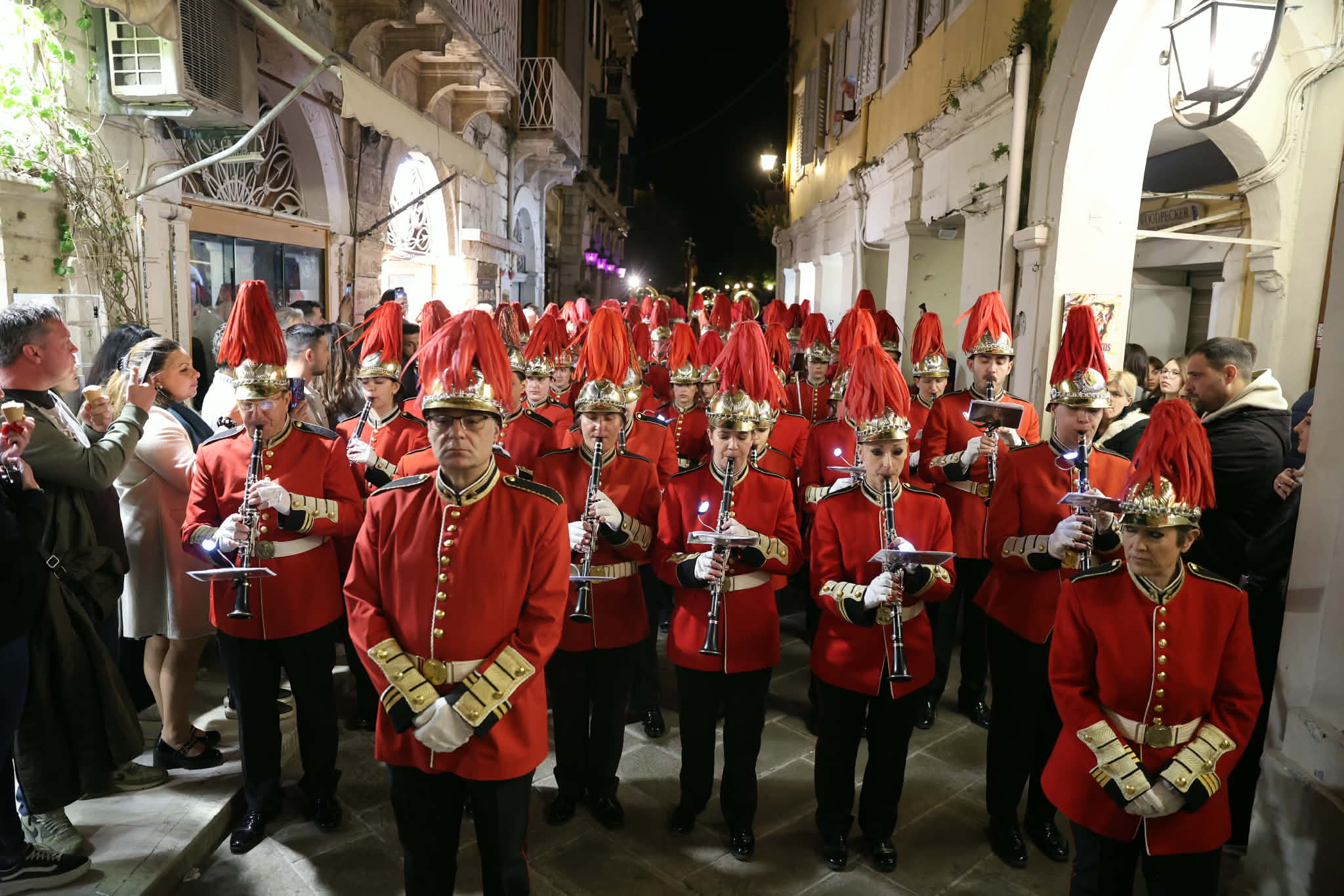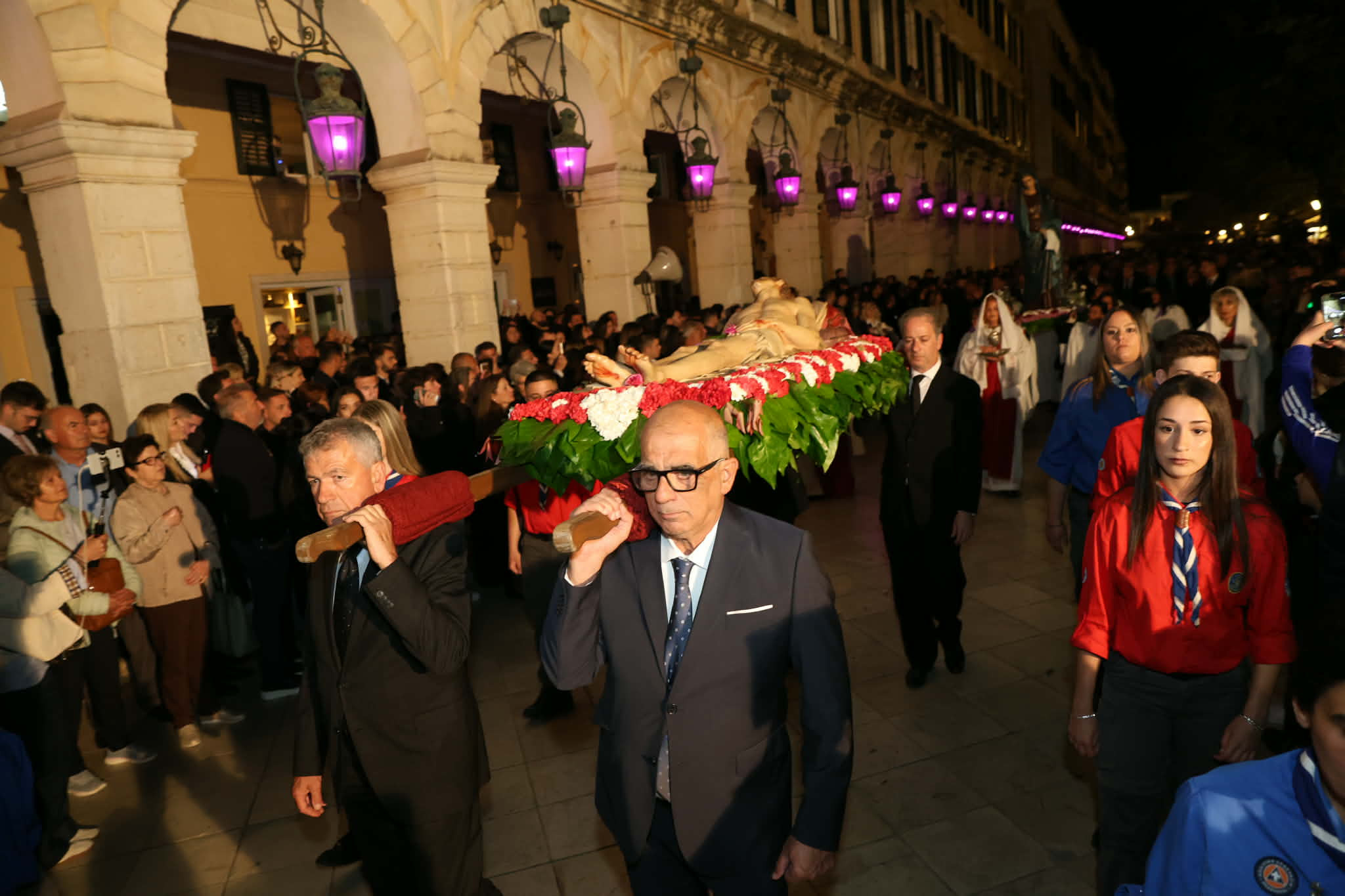 Με την πρέπουσα μεγαλοπρέπεια και σεβασμό, το πλήθος κόσμου που συγκεντρώθηκε στην Πλατεία Δημαρχείου έγινε ένα με την πομπή. Η συγκίνηση ήταν διάχυτη στα πρόσωπα ντόπιων και επισκεπτών, καθώς η Κέρκυρα υποδέχεται το Θείο Δράμα με τον δικό της, αριστοκρατικό και κατανυκτικό τρόπο.