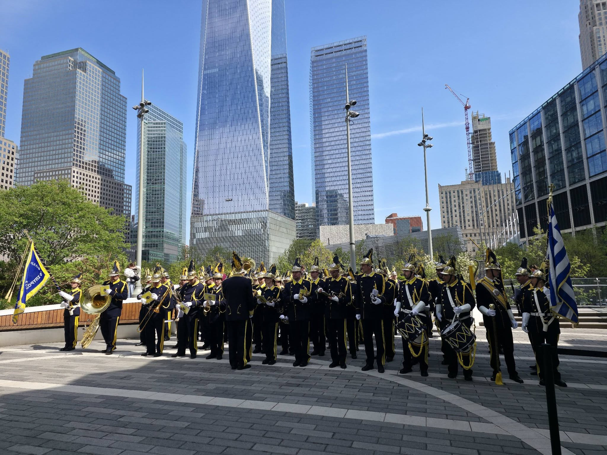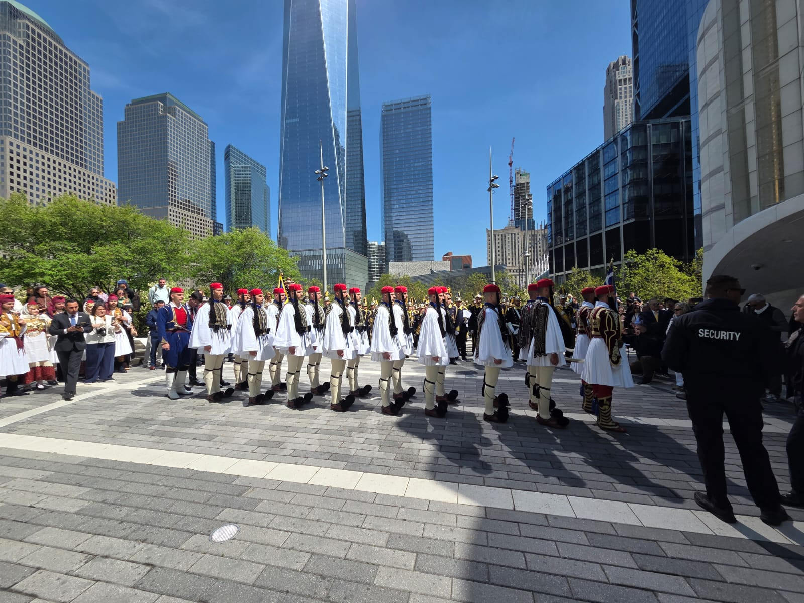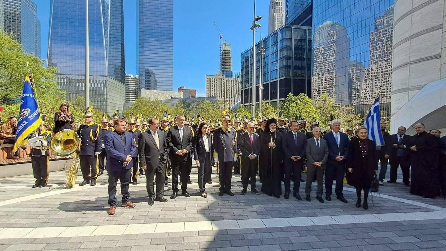 Στη συνέχεια, η γαλανόλευκη και η ιστορική αμερικανική σημαία "Betsy Ross" υψώθηκαν στον ουρανό του Bowling Green στο Νότιο Μανχάταν. Η τελετή αυτή, στην καρδιά της Wall Street, πλαισιώθηκε από την επιβλητική παρουσία των Ευζώνων, τις μελωδίες της Φιλαρμονικής Κορακιάνας, καθώς και τις παραδοσιακές εμφανίσεις από τον Όμιλο χορών ΦΙΛΠΑ Λάρισας και το Χορευτικό Συγκρότημα του Δήμου Μεσολογγίου.