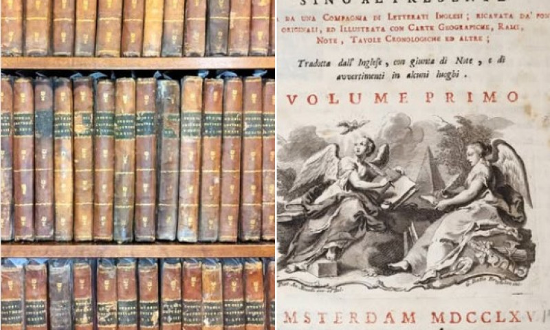 Συγκεκριμένα, πρόκειται για το εμβληματικό έργο της περιόδου του Διαφωτισμού «Storia universale dal principio del mondo sino al presente» (ιταλική μετάφραση του "An Universal History"), του Antonio Foglierini (Amsterdam [Venezia], 1765-1794), το οποίο αποτελείται από 51 τόμους.