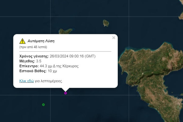 Another earthquake just west of Corfu