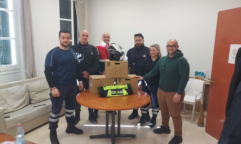 Η δωρεά τριών (3) προστατευτικών κράνων για τους διασώστες των δικύκλων ταχείας ανταπόκρισης του ΕΚΑΒ Κέρκυρας, αποτελεί μια ουσιαστική ενίσχυση του εξοπλισμού, η οποία συμβάλλει άμεσα στην ασφάλεια των συναδέλφων την ώρα του καθήκοντος.