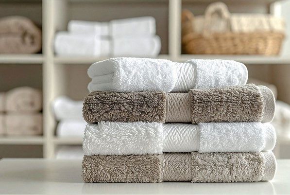 Ήρθε η ώρα να αντικαταστήσεις τις παλιές σου πετσέτες με ένα καινούργιο σετ από αφράτες, μεγάλες πετσέτες μπάνιου, ιδανικά σε λευκό ή ουδέτερο χρώμα (όπως γκρι ή μπεζ). Το μυστικό, όμως, δεν κρύβεται μόνο στην ποιότητα, αλλά και στον τρόπο που τις παρουσιάζεις: